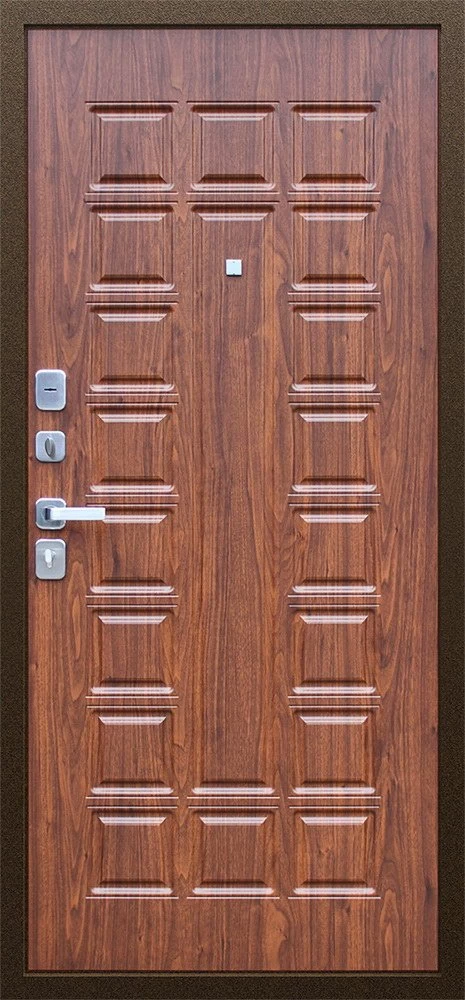 Надежная входная Дверь Спартак Орех темный премиум класса по цене 34 835 руб. Большая толщина стали защитит от проникновения в ваш дом, квартиру или коттедж. Используется очень качественная фурнитура: замки, цилиндры, ручки, защелки. Покрытие и отделка двери изготовлено под внимательным контролем производителя. Дверь имеет долгий срок службы и гарантию.